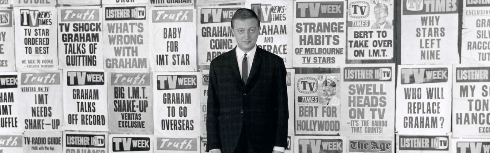 The National Film and Sound Archive of Australia (NFSA) is celebrating the life and work of ‘The King’ of Australian television, Graham Kennedy, with a new online exhibition featuring memorable, rare and personal clips, as well as tributes and artefacts that span his more than four-decade long career across radio, television and film.