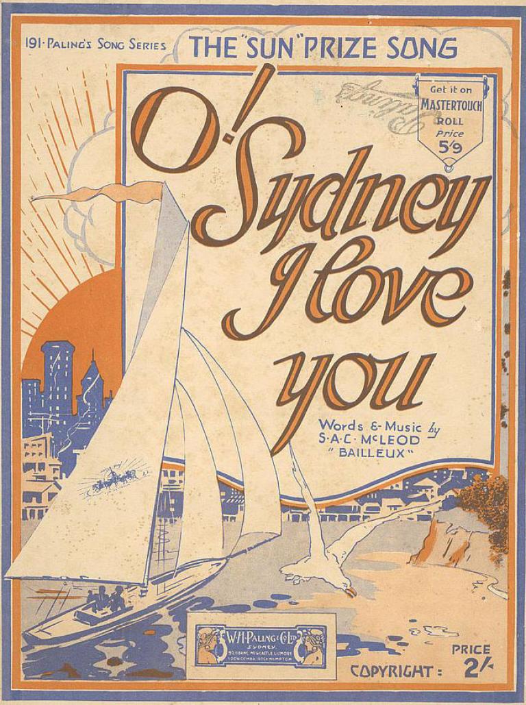'O! Sydney I Love You' sheet music https://www.nfsa.gov.au/sites/default/files/uploads/2012/03/22/05OSydney.jpg Title: 'O! Sydney I Love You' sheet music Courtesy National Library of Australia http://nla.gov.au/nla.mus-an7579855-s1-e-cd Request access Access fees