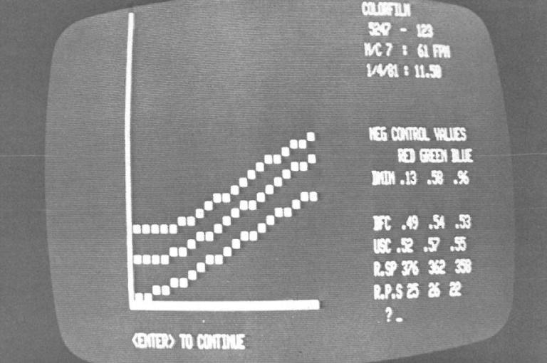 A low-resolution display for the computed results in an early film lab system https://www.nfsa.gov.au/sites/default/files/uploads/2011/08/08/Dominic_blog_2.JPG Title: A low-resolution display for the computed results in an early film lab system Request access Access fees