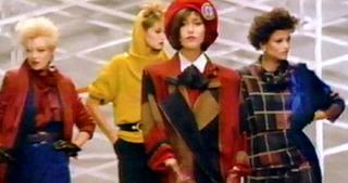 The clip ends with new designs in evening wear: for gowns too, 'the frontless look is tops'.