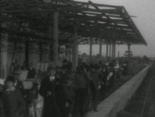 Railway workers unload materials from a railway truck for the construction of a segment of the trans-continental railway line. Two men in a horsedrawn buggy ride past the camera. Another view shows men laying timber sleepers and metal rails. Men shovel dirt away in another section of railway built over raised concrete platforms. A tracking shot reveals massive piles of wooden rails that will be laid to form the tracks. Summary by Poppy de Souza.