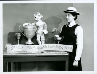 This ginger cat puppet, named Amanda, appeared on Australian television in the late 1950s. Amanda the Cat was conceived, made, voiced and operated by Ann Davis, one of Australia's leading puppet makers and puppeteers. Amanda had a regular spot on children's TV shows including Desmond and the Channel Ninepins and Monday Hit Parade.