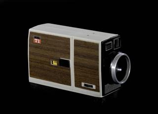 This Astral TI Super 8 instant load camera is a cute point-and-shoot camera – nothing too fancy except for the wood laminate on its case. Inside the camera is an original Super 8mm film cartridge. After filming a roll, the budding filmmaker would then have to mail it to a Kodak lab for processing, which could take anywhere from four days to several weeks. Waiting to see the finished product was exciting and required patience, a trait that might seem strange or difficult for those used to instantaneous-view digital technology.