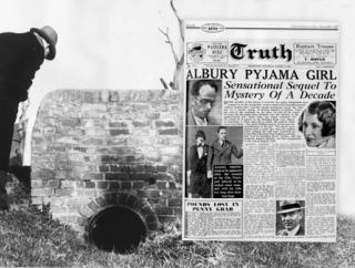 - The 'Pyjama Girl murder’, one of the most baffling cases in Australian criminal law, involved an extensive police investigation and began after the battered and partially burnt body of a woman dressed in yellow silk pyjamas was found in an open drain in Albury on 1 September 1934. The victim’s head was wrapped in a bloody towel and her body was pushed headfirst into a hessian bag. The body had then been set alight. A post-mortem revealed that she had been shot below the right eye, but the cause of death was probably eight blows to her face.