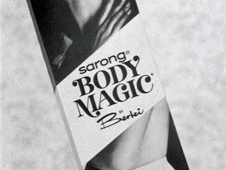 The narrator says, 'This is the fashion picture as Berlei sees it. Are you ready? ... Under plastic you need a figure.'