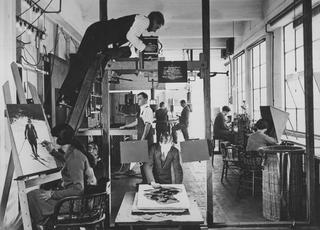 Bert Ive on ladder in Cinema and Photographic Branch