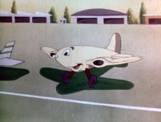 This clip shows an animated cinema advertisement for Bushells tea, beginning with a map of the world and a voice-over that invites the viewer into ‘the world of the future’, said to be full of ‘happy and modern people’. The clip depicts futuristic cars and international travel by fast aeroplanes and ocean liners. A flight attendant tells the viewer that Bushells tea is always served on flights, and the voice-over explains that this is because ‘Bushells tea means contented passengers’. The advertisement leaves the viewer with the message that although the world may change, Bushells tea will always remain the same. An orchestral score accompanies the clip.