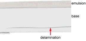 cross-section of a delaminated polyester base