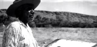 This clip shows Oodgeroo Noonuccal, Indigenous activist, artist and poet, relating how her poetry emerged from the political activism she undertook on behalf of her people. A narrator introduces Noonuccal, filmed with children on Minjerribah (North Stradbroke Island), followed by a black-and-white photograph of her as a younger woman. She reads her poem ‘The dispossessed’, accompanied by soft haunting music. The camera cuts to an Aboriginal artwork with the title of her poem superimposed on it. A series of archival black-and-white photographs illustrate the reading, followed by photographs showing her political activism in the 1960s.