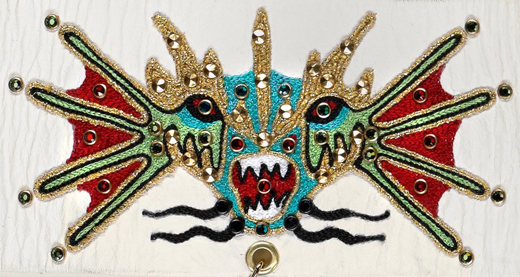 A white jumpsuit with Aztec-style embroidered detail worn by Austin Butler in the film ELVIS.