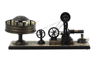 The kinematofor, made by Ernst Plank of Germany, is a variation of the praxinoscope invented in 1876 by Paris school teacher Charles-Émile Reynaud. This kinematofer dates from 1898. An intricate pre-cinema toy, it was also a successor to the zoetrope.
