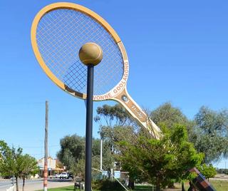 Evonne Goolagong Giant Tennis Racquet, Barellan by Mattinbgn licensed under CC BY-SA 2