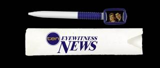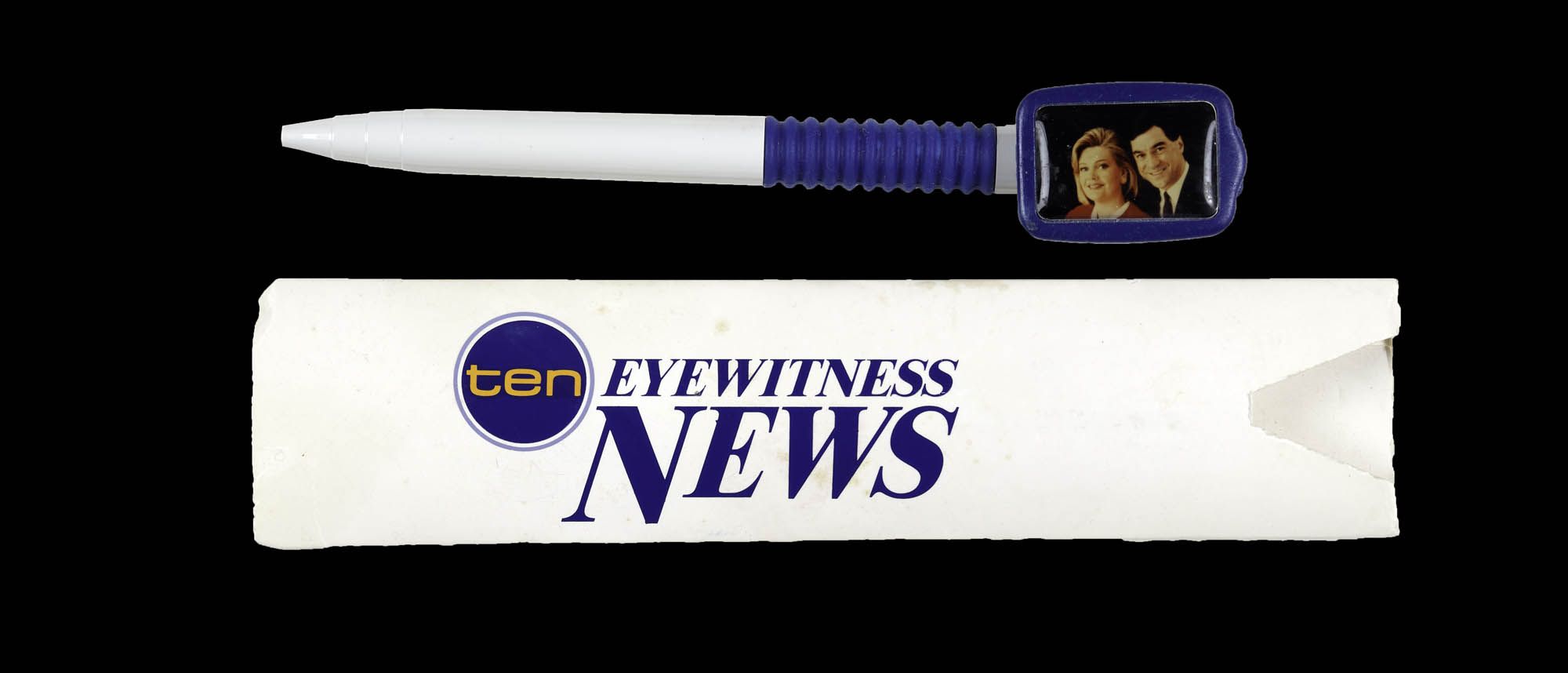 Since the 1970s, Eyewitness News on Network Ten has been a trailblazer in news broadcasting by focusing on ‘live’ and ‘breaking’ stories. Rebranded as 10 News First in 2018, it carries forward the legacy of its early 5 pm timeslot and energetic approach. This promotional pen incorporates the faces of popular newsreaders Katrina Lee and John Mangos. It's a striking example of how television networks have used personality-driven branding to build viewer loyalty.