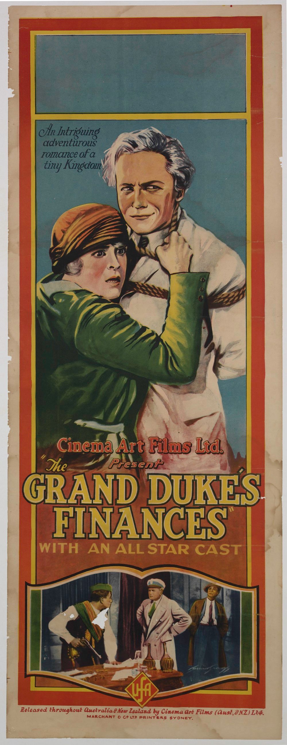 This full colour lithograph promotes the UFA production The Grand Duke’s Finances (original German title: Die Finanzen des Großherzogs). This film is legendary German director FW Murnau’s only comedy film.
