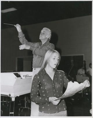 Hector Crawford conducting orchestra for Colleen Hewett, Music for the People Concert, c.1975