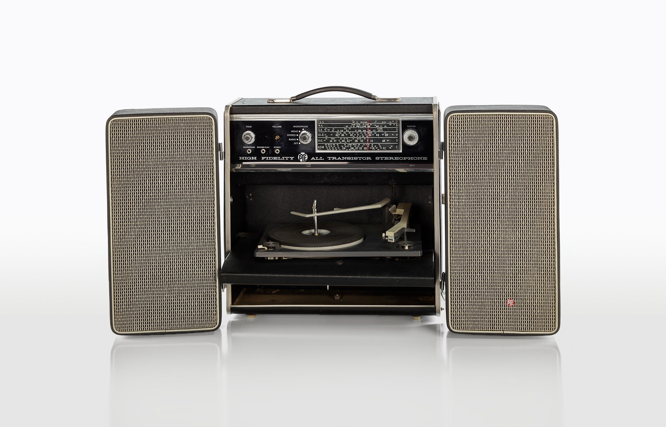 The television set was the main selling point here, the radio and turntable neatly tucked out of sight. Produced in Australia for HG Palmer, a large electrical retailer with over 150 stores nationwide in the early 1960s.