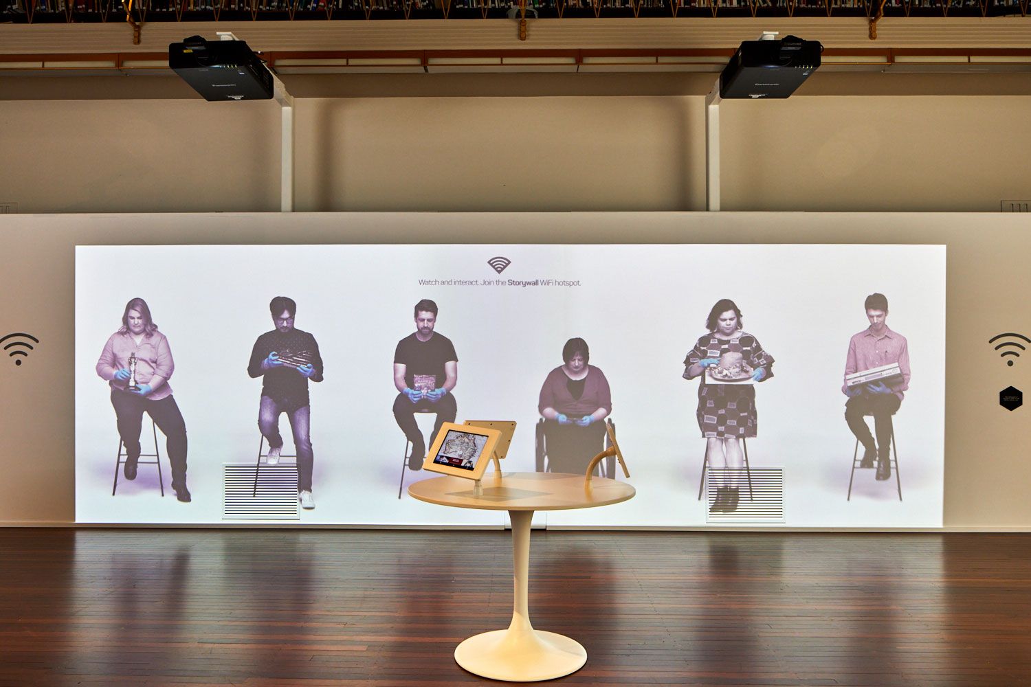 Storywall features a life-size projection of six NFSA experts 'waiting' for visitors to interact with them using their mobile devices. Once selected, they will tell a story about themselves and their passion for Australia's audiovisual history, as well as digitally showcasing items from the NFSA collection.