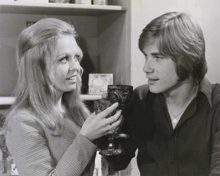 Jacki Weaver (playing music reporter Vicki Gaye) and Buddy England raise glasses in Homicide Ep. 240, The Sound of Money.