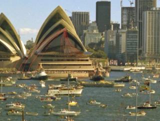 In one of the more interesting uses of the Sydney Opera House, martial arts film star Jackie Chan films a battle sequence atop the sails of the building.