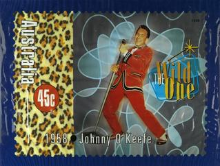 Johnny O'Keefe poster featuring postage stamp design issued in 1998