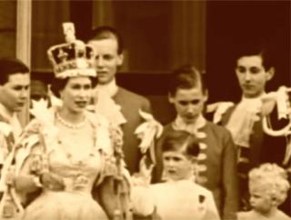 A crowd of eighteen thousand people greet the Queen in Royal Park Victoria in 1977. The royal party stands on the dais while 'God Save the Queen’ is sung by the massed crowd. The royal party then drive, waving, through crowds of cheering children to the strains of 'Waltzing Matilda’.