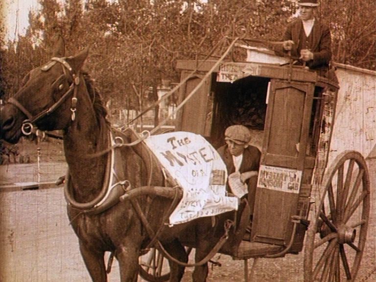 The advertisement uses intertitles to provide story context and present dialogue. Cinema advertisements at this time often ended with a close-up of the product.