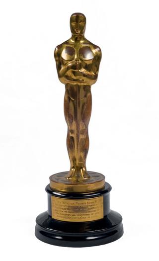 This is Australia’s first ever Oscar, awarded to Cinesound Review’s chief director Ken G Hall (1901–1994) for Kokoda Front Line! (1942). The inscription on the Oscar reads: ‘To Kokoda Front Line! for its effectiveness in portraying simply yet forcefully the scene of war in New Guinea and for its moving presentation of the bravery and fortitude of our Australian comrades in arms'.