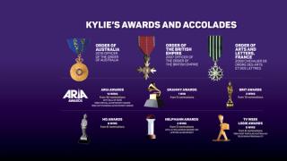 Over the decades, Kylie has won and been nominated for hundreds of industry and community awards, including 14 ARIAs, a Grammy Award, Logies, Brit Awards and many more. She also has state and academic awards including an honorary doctorate, OBE and OAM.