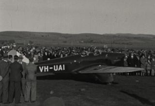 The new Miles M.2 Hawk VH-UAI plane was christened at the South Australian Aero Club held at Parafield on 18 June 1935 in conjunction with Empire Air Day festivities – an event celebrated by the British Empire annually in the late 1930s. Lady Dugan, the wife of the Irish-born Governor of South Australia (1934–39) Sir Winston Dugan, broke a bottle of champagne to officially christen the plane.