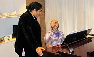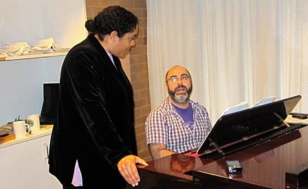 Lisa Maza and Nigel Ubrihien rehearsing for Cooee Cabaret