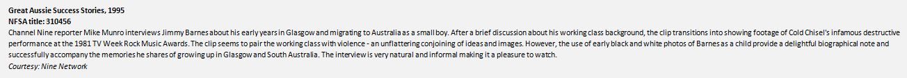 Notes on Great Aussie Success Stories: Jimmy Barnes early years