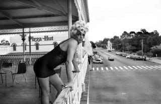 Priscilla: Hugo Weaving leaning on balcony