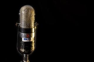 Comprises a black metal microphone with chrome head and chrome handle with an opening at the base to screw into a stand. Electrical cord is attached. Red RCA logo in the middle of the chrome head. Operation method: Electric. Manufactured c1940.