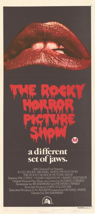 This daybill poster for cult classic The Rocky Horror Picture Show (Jim Sharman, 1975) is a perfect example of how important a film's marketing material can be. It features the now iconic red titling and lips of Dr Frank-N-Furter (Tim Curry), which instantly signal the film's campy tone and have become synonymous with the movie ever since. The film – a spoof of schlocky science-fiction B-movies presented in the form of a seedy rock'n'roll musical – also has a unique Australian connection, in its director and co-writer Jim Sharman. The poster's tagline references Steven Spielberg's No. 1 blockbuster of 1975, Jaws. But in the ensuing decades, The Rocky Horror Picture Show has itself become a monumental box-office success, having been in constant circulation since its release 50+ years ago. When this daybill poster was created, no one could have predicted just how much of an enduring pop culture juggernaut it would become. Let’s do the time warp again! And again. And again.