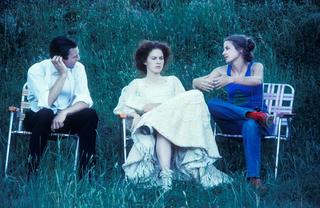 This serendipitous shot captured by photographer David Kynoch depicts the transitional stage where actors Sam Neill and Judy Davis are assuming their characters and director Gillian Armstrong is describing her vision for the shoot.
