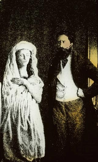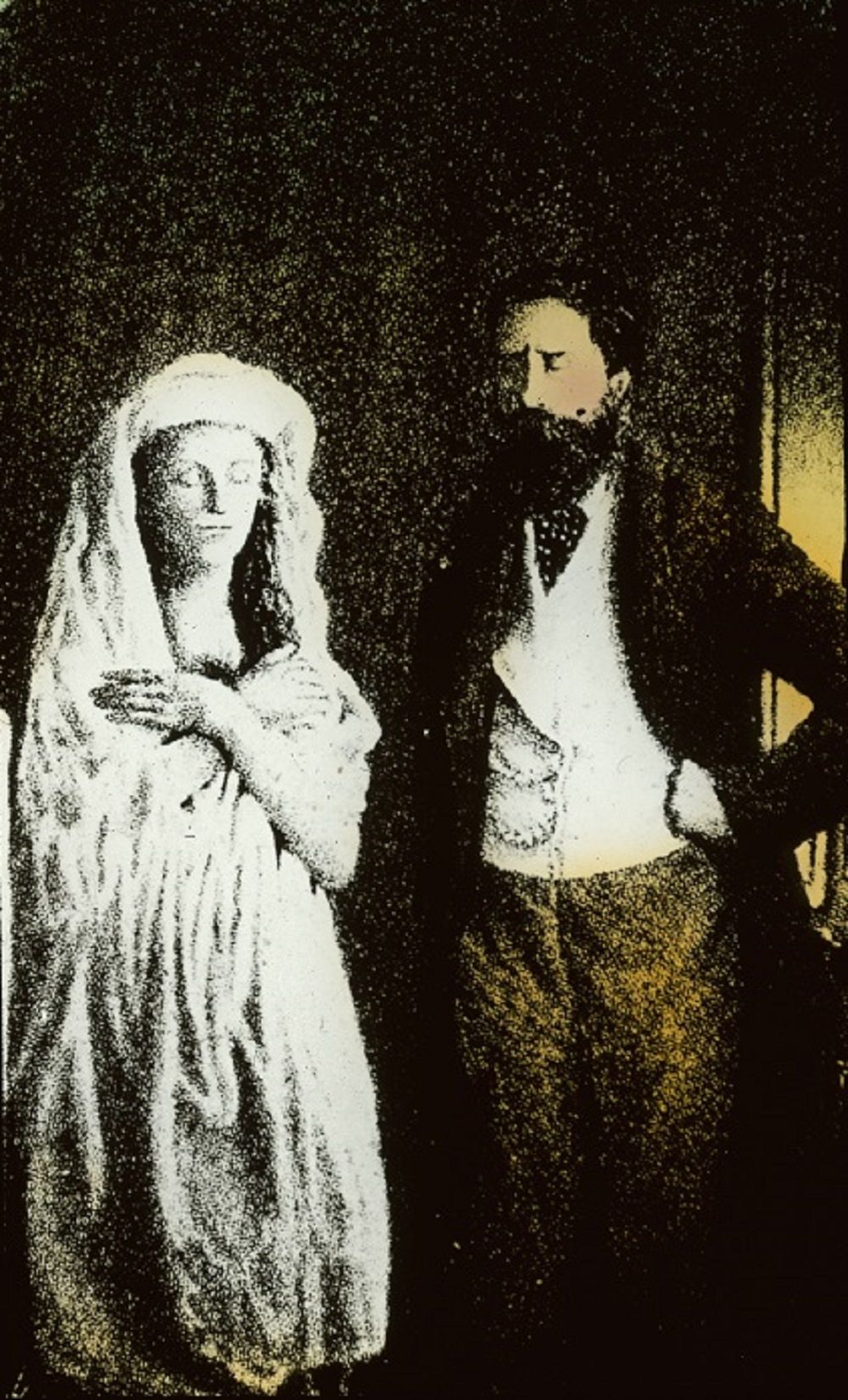 The image on the left is the celebrated spirit Katie King, who Crookes was able to photograph several times. King was said to have appeared first between 1871 and 1874 in seances conducted by Florence Cook in London, and later in 1874-1875 in New York. Cook would materialise King, who walked and talked to participants in the seance. She even allowed herself to be weighed and measured.