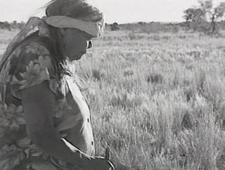A black-and-white clip shows the dramatisation of a story told by the old people in Central Australia. Children are playing games – clapping, drawing in the dirt. A woman announces that some children are going to go with her to get some food. Other children are left behind with the older women, who fall asleep. We see the ominous arrival of a four-wheel drive truck. Summary by Romaine Moreton.