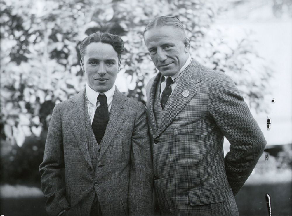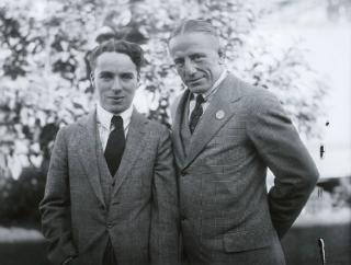 Snowy Baker leans against a truck with 'Carroll-Baker Australian Picture Productions' painted on the side.