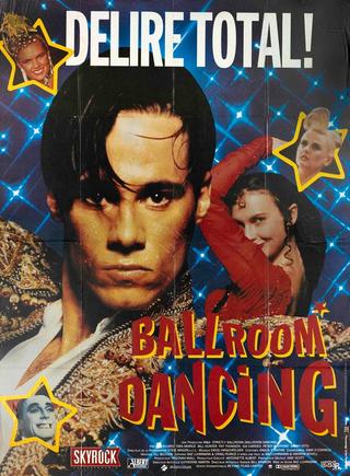 Though rather dark, this poster is very effective in capturing the tone of the film. Strictly Ballroom is noted for its camp and glitzy aesthetic and this poster successfully promotes this through its use of numerous artificial starbursts and glamour portraits. Paul Mercurio as the lead actor dominates the poster striking a dramatic pose which is taken from the climax of the film. His dancing partner, Tara Morice, looks seductively over her shoulder. Supporting cast members (Barry Otto, Sonia Kruger and Gia Carides) appear in kitsch star shapes. The film's French title, Ballroom Dancing, is printed in a jaunty, bouncing font meant to simulate movement - up and down, forwards and backwards. This concept is successful given that the film centres around dance. What is odd, however, is the white text at the top of the poster. The stark, blocky white font of 'Delire total' (total delirium) seems out of place and somewhat unsympathetic to the rest of the poster's design.