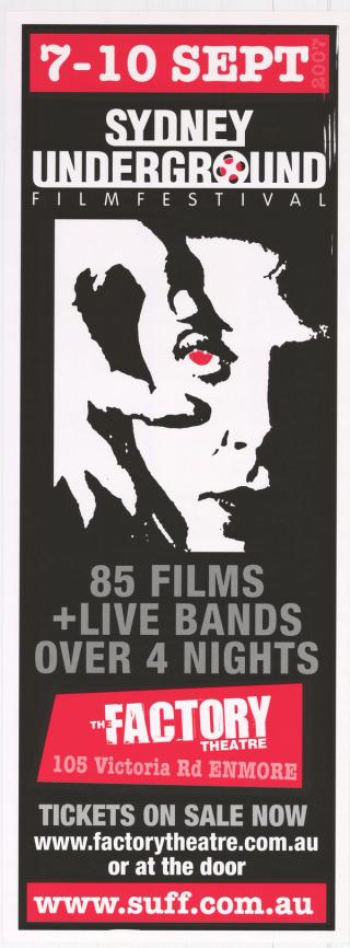 Poster for the Sydney Underground Film Festival, held on 7-10 September, 2007. The Festival featured 85 films as well as live bands over four nights.