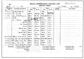 TCN9 opening night log page, 16 September 1956