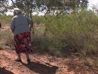 Elder Napanangka tells us about the songs and dances of this particular country. We begin to get an understanding that this land is alive and requires management through dances and songs. When Napanangka tells us that people from ‘other countries’ might get sick, she is referring to anyone who is not from this place.
