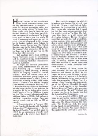 Testimonial Dinner for Hector Crawford, 14 September 1984 - Biography by Christopher Day
