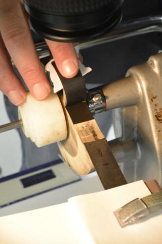The 1901 cricket Kinora reel mounted on the custom-made player.