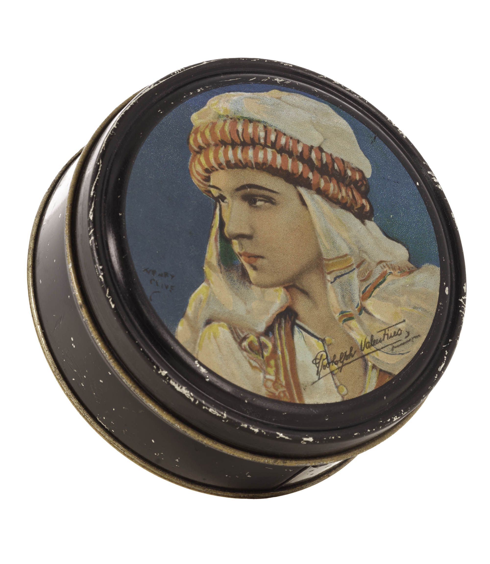 Italian-born actor Rudolph Valentino was the ultimate heartthrob of the silver screen, forever immortalised for his smoldering role in The Sheik. This Beautebox tin perfectly captured his dashing allure, with thanks to Melbourne-born artist Henry Clive. But Clive wasn’t just a painter—he kicked off his career as a magician, had a stint as a silent film actor, worked as a set designer for Charlie Chaplin, and eventually became Hollywood’s go-to ‘cover girl artist’ in the 1920s, painting all the finest stars of the day. At 69, Clive married his fifth wife, Acquanetta, a fiery B-movie star known as ‘The Venezuelan Volcano,’ proving he was no stranger to a little drama off-screen.