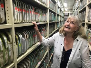 Val Lehmann in the magnetic tape storage vault