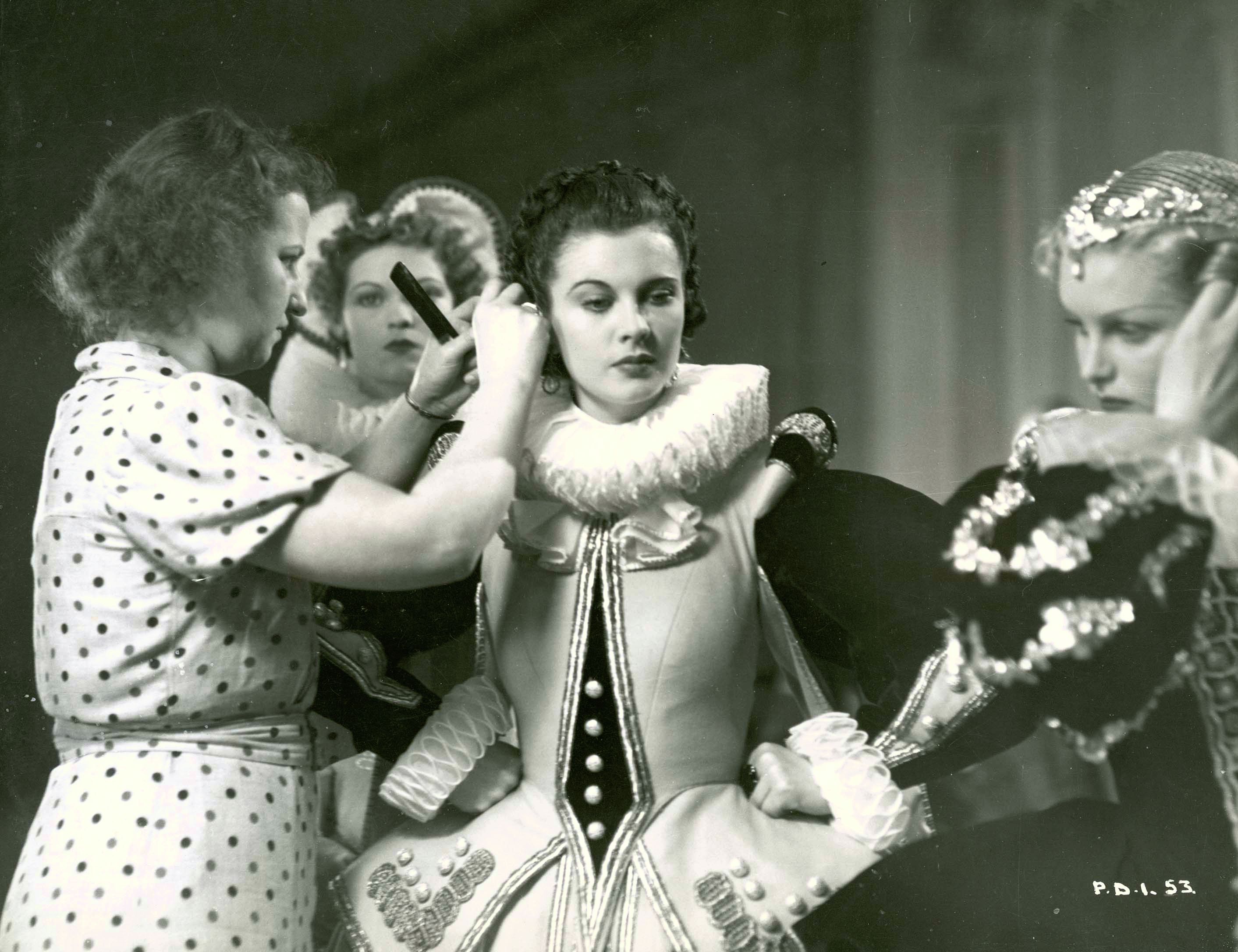 Vivien Leigh in costume on the set of Fire Over England (William K Howard, UK, 1937). From the Taussig film stills collection.
