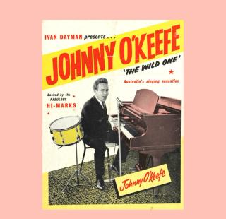 Front cover of concert program: ‘The Hi-Fi Club presents Johnny O’Keefe, the Wild One, backed by the Fabulous Hi-Marks’, c1962.