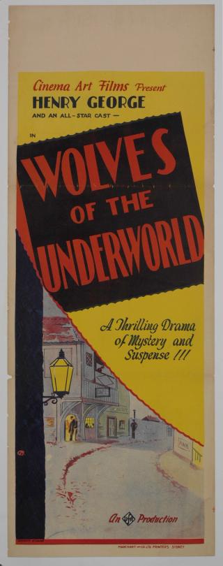 The unusual translation continues with the lead actor’s name. ‘Henry George’ is in fact Heinrich George, who also appeared in Metropolis, and this anglicisation of his name is an anomaly. This is also inconsistent with the other Cinema Art posters in the NFSA collection from the same period where credits were not anglicised.