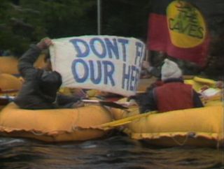 Most banners have since been lost, making this footage and surviving photographs a vital record of both the artwork and the protest.